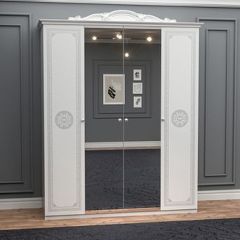 Шкаф 4-х дверный с зеркалами (12.244) Грация (белый/серебро)