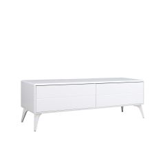 Металлические ножки служат надёжной опорой для изделия, а их белый глянцевый декор делает тумбу и ножки единым целым.