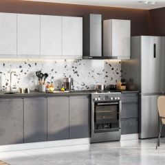 Кухонный гарнитур Вельвет 2.0м МДФ (без столешниц) Белый/Бетон Снежный/Бетон графит