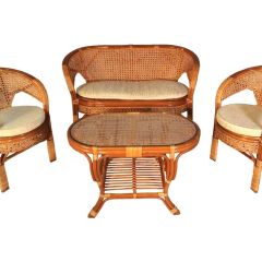 Комплект мебели для террасы 02/15 включает в себя: 2 кресла, плетеный двухместный диван, столик журнальный, подушки из материала улучшенного качества.
